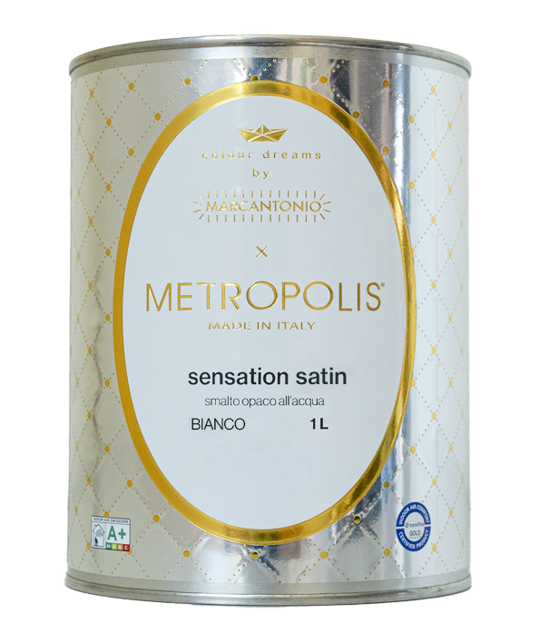 Smalto di pregio all’acqua eco-sostenibile certificato per ambienti sani, salubri e confortevoli.